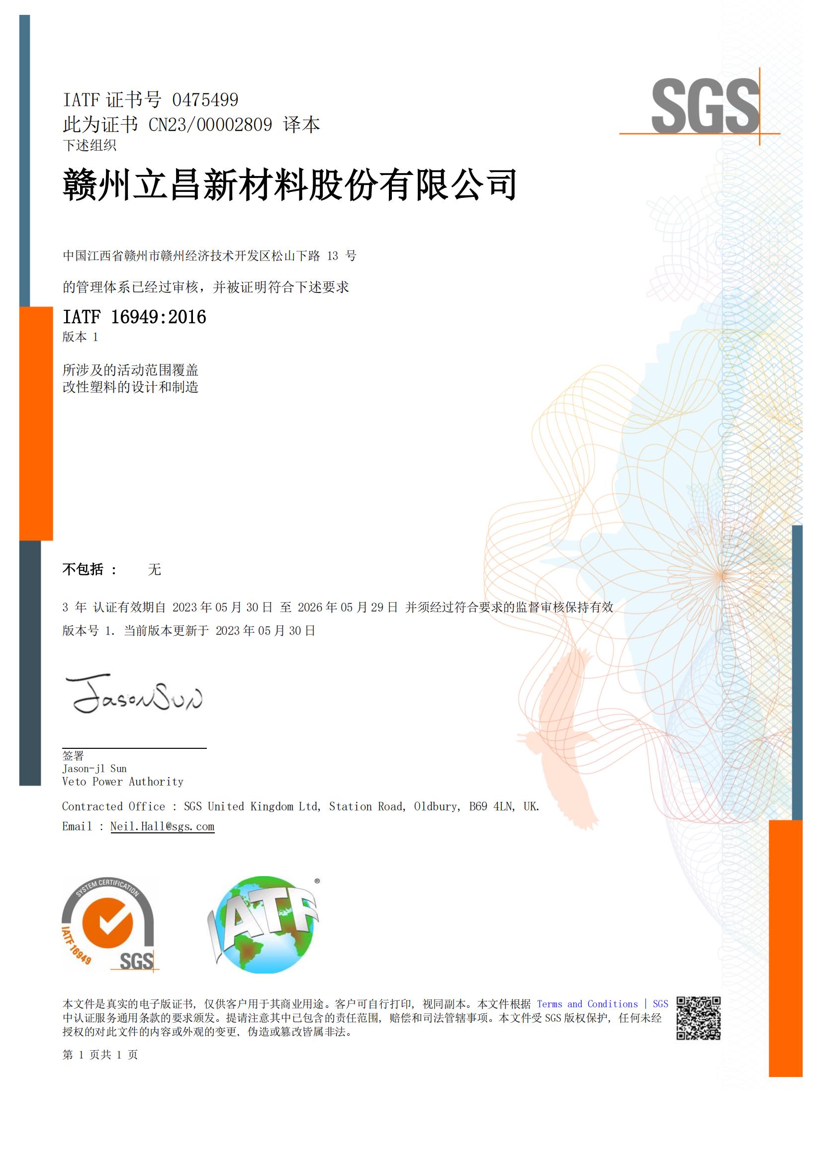 贛州立昌新材料股份有限公司 地址:江西省贛州市經(jīng)濟技術開發(fā)區(qū)松山下路13號